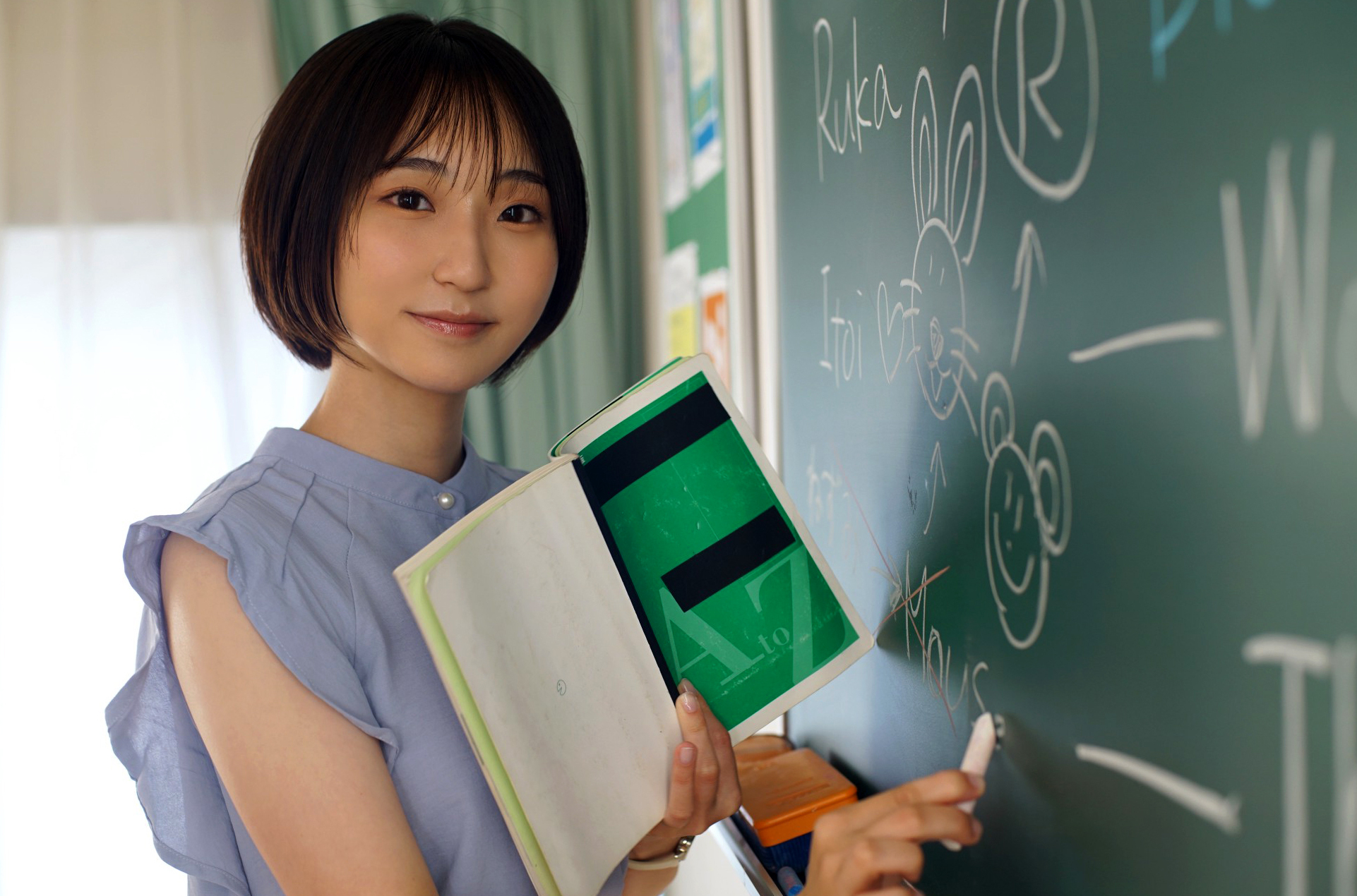 교육학부 재학 중이라는 설정을 반영해 교실을 중심으로 한 세트가 사용되었습니다.